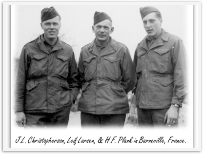 A few days later, in January 1945, we were moved from Malmédy to Stavelot in Belgium; and there we continued doing practically the same things we’d been doing around Malmédy, only it was a little more forested. Lots of times we were near enough to Germans that we could hear them talking but couldn’t see them. It was bitter cold with up to two feet of snow, and most of the time was spent in foxholes until January 18th. On the 13th of January, when I turned 21 years old, the captain of the company, knowing it was my birthday, pulled me out of my foxhole; and I spent the day at company headquarters in a barn with a fire in a barrel. That was the only time during 28 days in the Malmédy and Stavelot area that I spent inside.